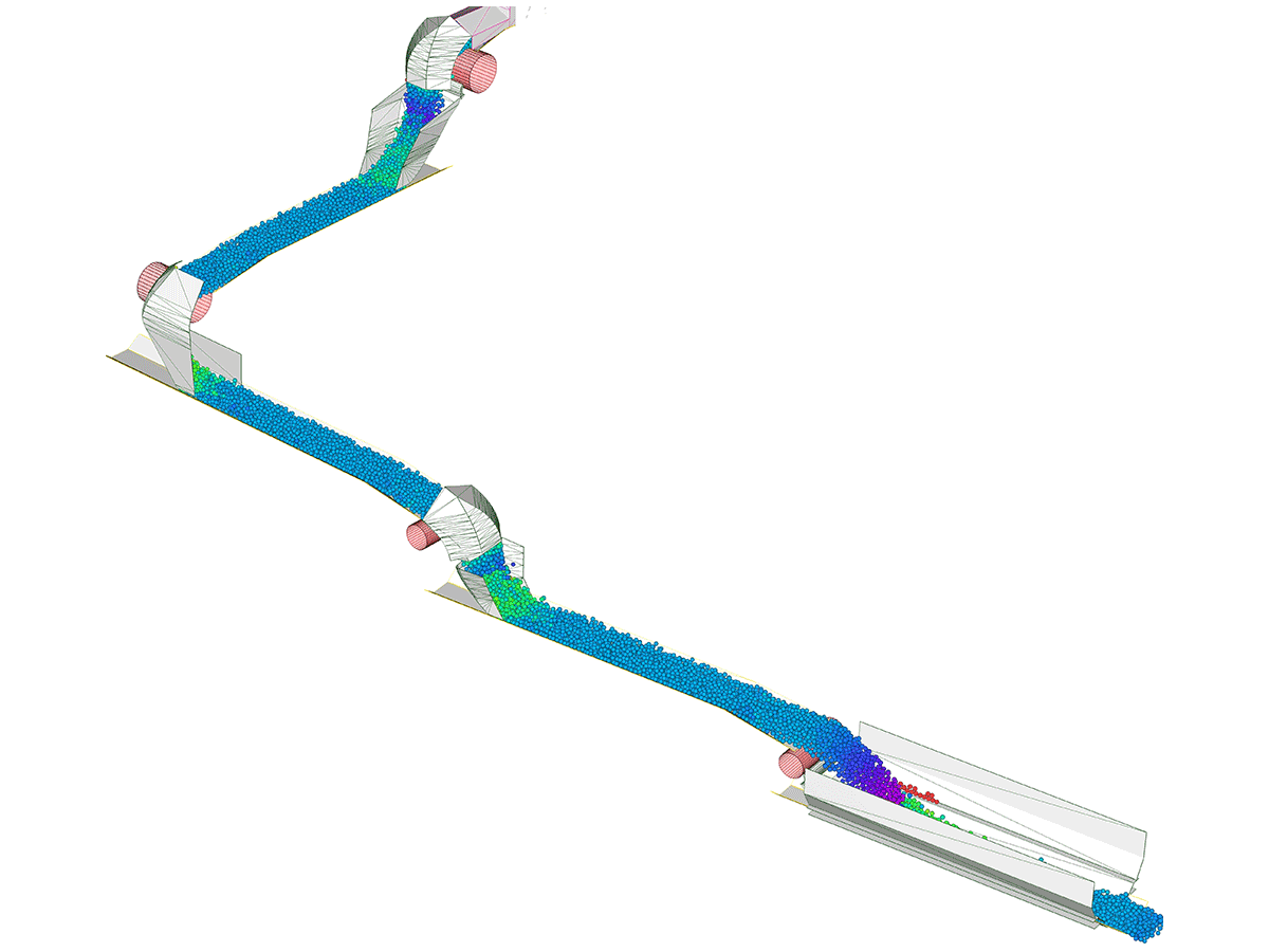 Chute Technology’s DEM modelling experience allows us to accurately show material flow before and after a new design, so that benefits are clearly shown. These benefits may include improved throughput (tph), reduced wear and reduced blockages or spillage. Chute Technology can improve the issue in a specific transfer point, take a broader view of a transfer system, or use our engineering expertise to provide a transfer audit on a series of transfers.
