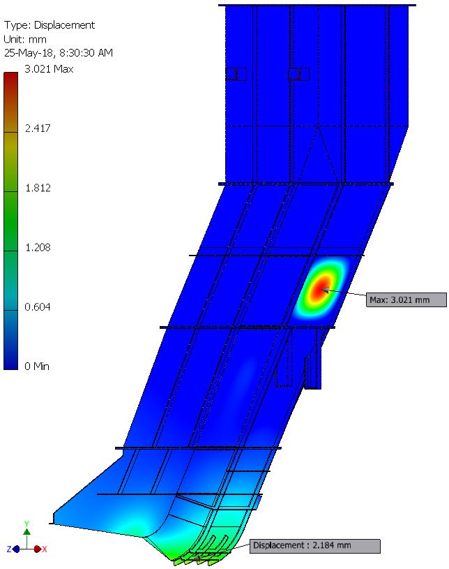 Cracked tiles, like the ones shown in the examples above, are a sign of excessive chute wall flex, thermal stress and could be related to material impact angles. An engineering analysis and chute audit is needed to determine the root cause of the issue and find solutions that prevent the problem from recurring. We also use Finite Element Analysis (FEA) for chute flex testing.