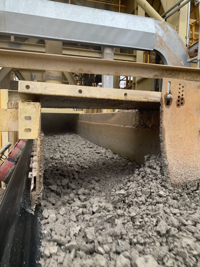 Chute Technology can design materials handling systems that prevent spillage and create a smooth material flow with no abrasive contact with skirtboards. In the images above, the first image shows the skirtboards wearing out (before), and then the second image shows the smooth flow (after).